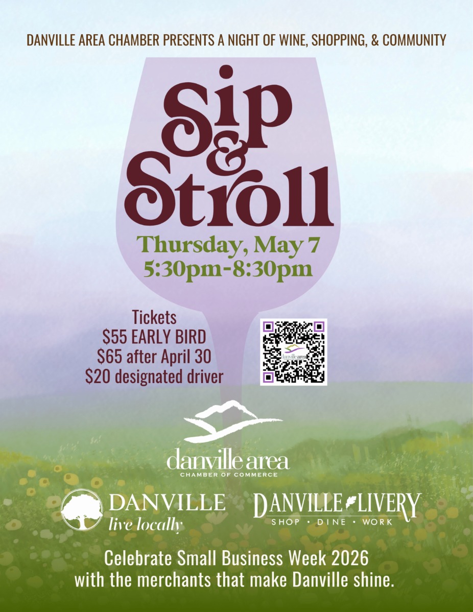 📅 Thursday, May 7th 🕒 5:30 PM - 8:30 PM 📍 Downtown Danville & The Livery Grab your partner, your besties, or come ready to mingle! Sip & Stroll is your perfect excuse for a night out in Danville. Enjoy boutique wine tastings, tasty bites, and a festive atmosphere as you stroll from stop to stop under the spring evening sky. 🚋 Hop on the trolley, discover new favorites, and make it a night to remember. 🎟️ Early Bird pricing is live for a limited time! Secure your spot before it’s gone. 💡 Want to get your brand in front of a vibrant crowd? We’re seeding some exciting, interactive sponsorship ideas ready to launch. Let’s partner to make this event unforgettable